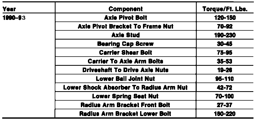 Tightening Specifications: