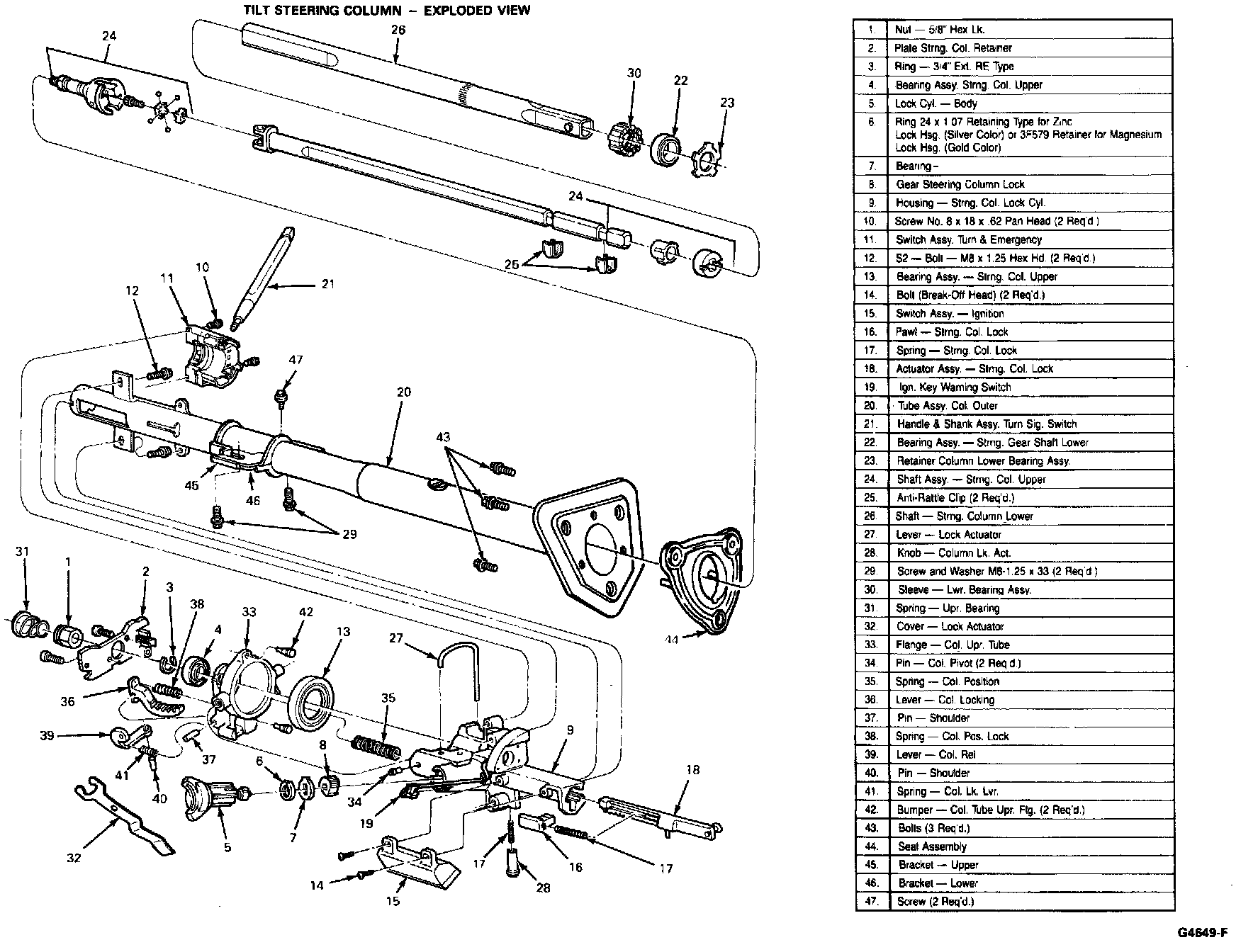 5. Remove the trim shroud by removing the 4 screws at the bottom of the shroud. Swing the bottom panel of the shroud open and remove the 2 screws attaching the shroud to the retaining plate. Remove the lock cylinder. Remove the shroud by first raising the left side so that the window for the turn signal switch lever is up past the lever receptacle, then pull up on the right side of the shroud until the lock cylinder embossment clears the lock cylinder housing. The shroud then can be worked past the instrument panel.
