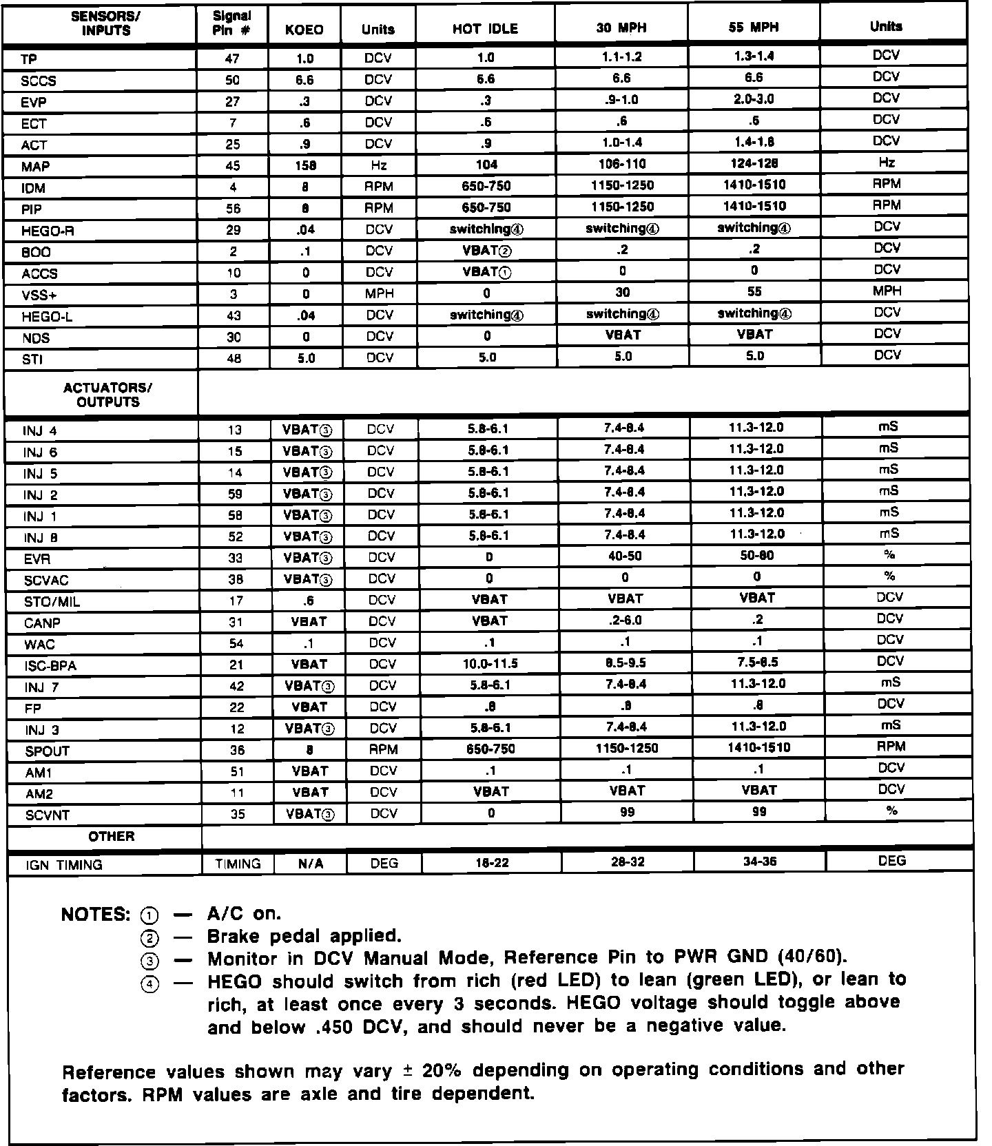 Normal Scan Data Values (Includes PIDs)