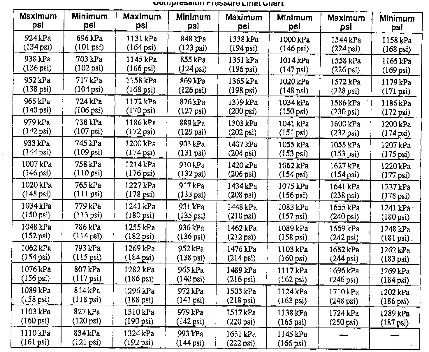 Use the Compression Pressure Limit Chart when checking cylinder compression so that the lowest reading is within 75 percent of the highest reading.