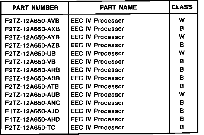 3. If after correcting the service code(s), the condition still persists, replace the EEC IV Processor. Refer to the Application Chart for correct parts usage.