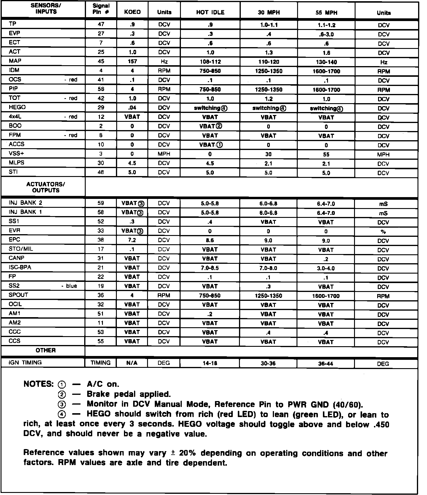 Normal Scan Data Values (Includes PIDs)