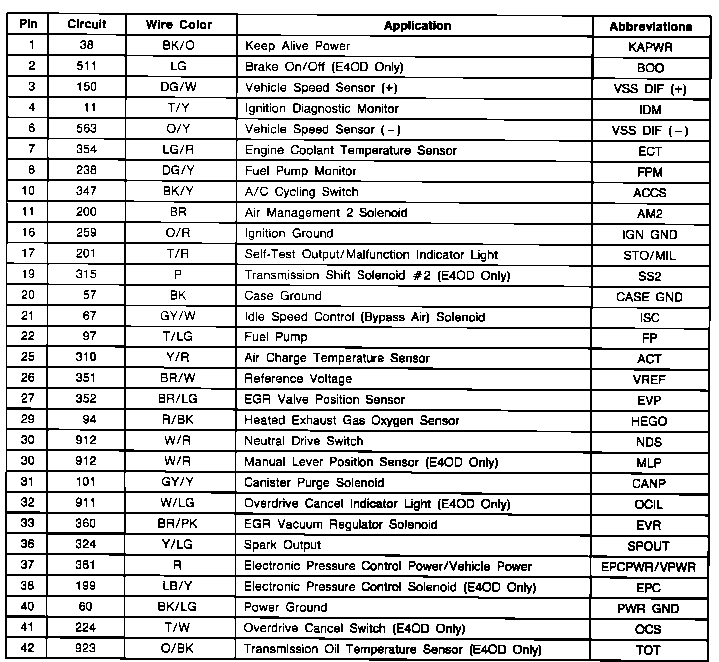 ECA Connector Pin Identification: