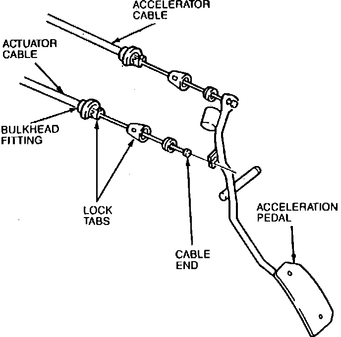 5. Remove actuator cable from cable routing clips, then squeeze lock tabs and remove cable end from pedal assembly.