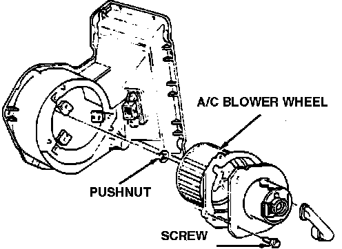 6. Remove three blower motor to housing attaching screws and remove motor and wheel assembly.