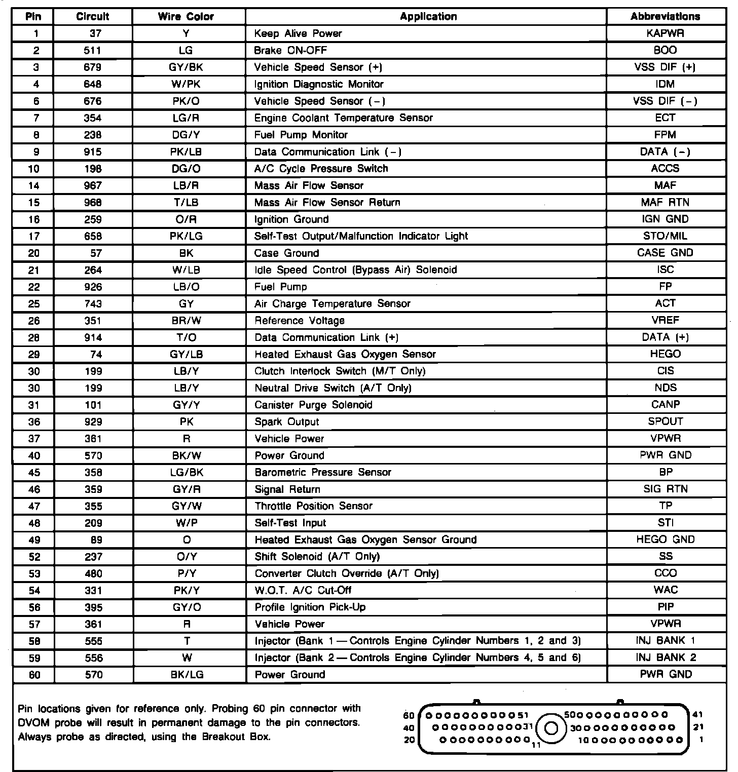 ECA Connector Pin Identification: