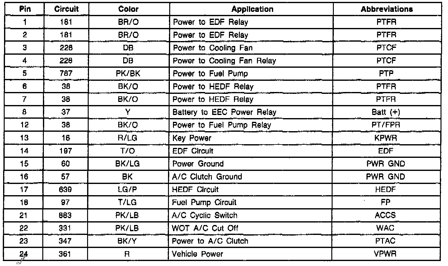 Integrated Relay Control Module Pin Usage.: