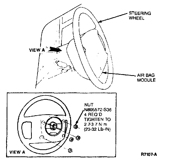 2. Remove four nut and washer assemblies retaining driver air bag to steering wheel.