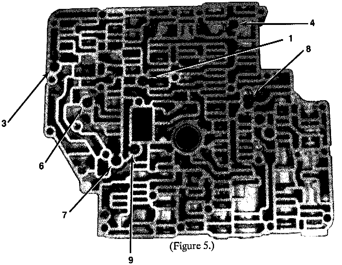 7. Direct clutch exhaust check (causes the direct clutch oil to exhaust thru the # 9 checkball during the 3 - 2 downshift).