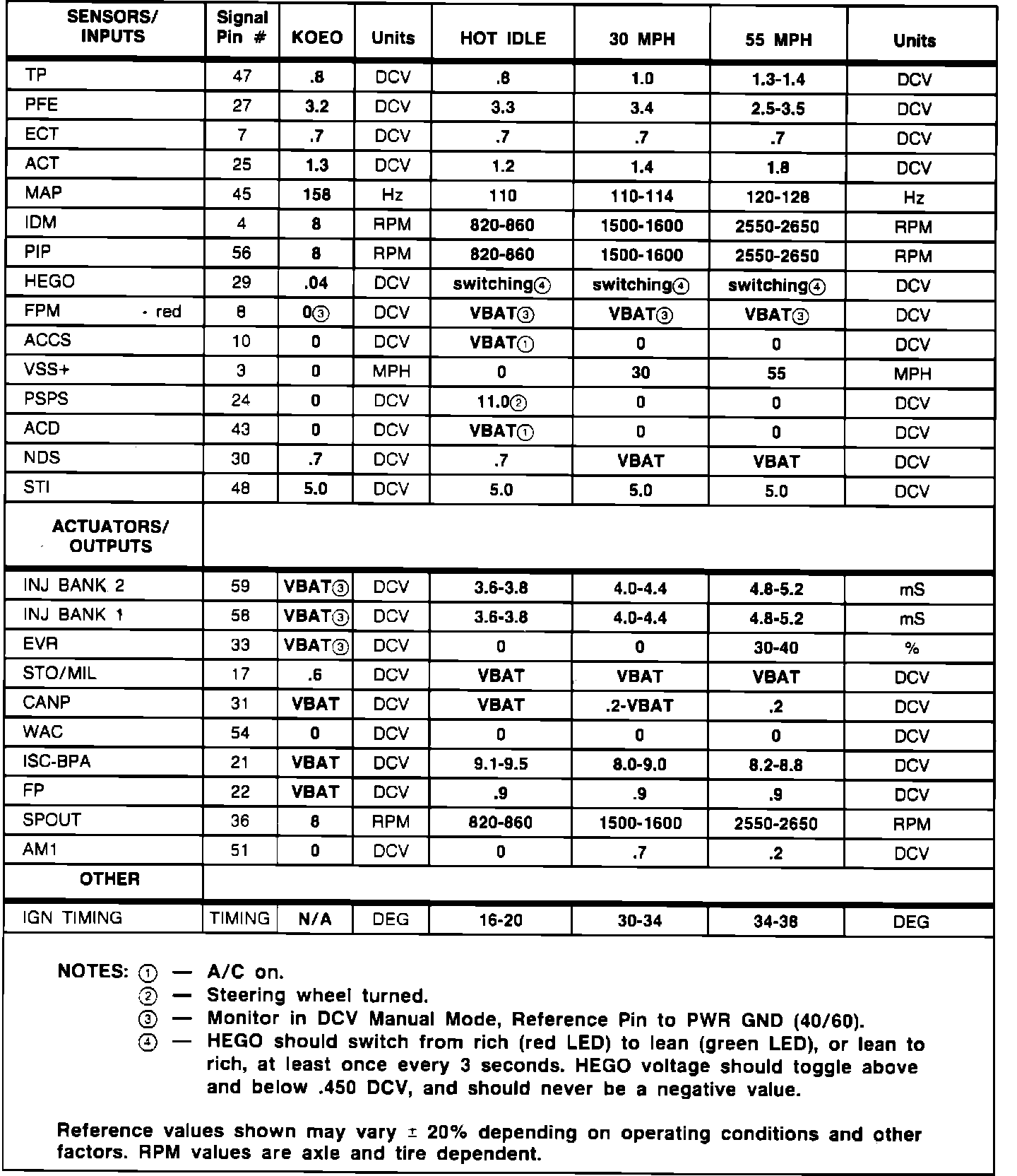 Normal Scan Data Values (Includes PIDs)