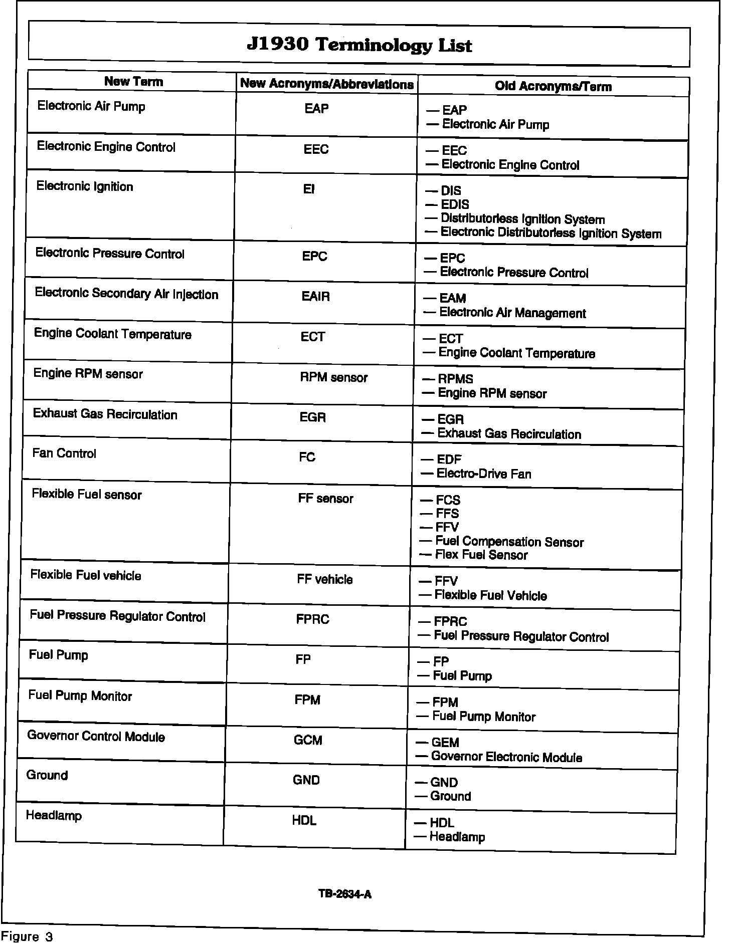 The California Air Resources Board (CARB) passed a law that standardizes all part and system names and acronyms used to describe electronic emission related systems and components for all manufacturers. This law is effective beginning with 1993 model year vehicles.