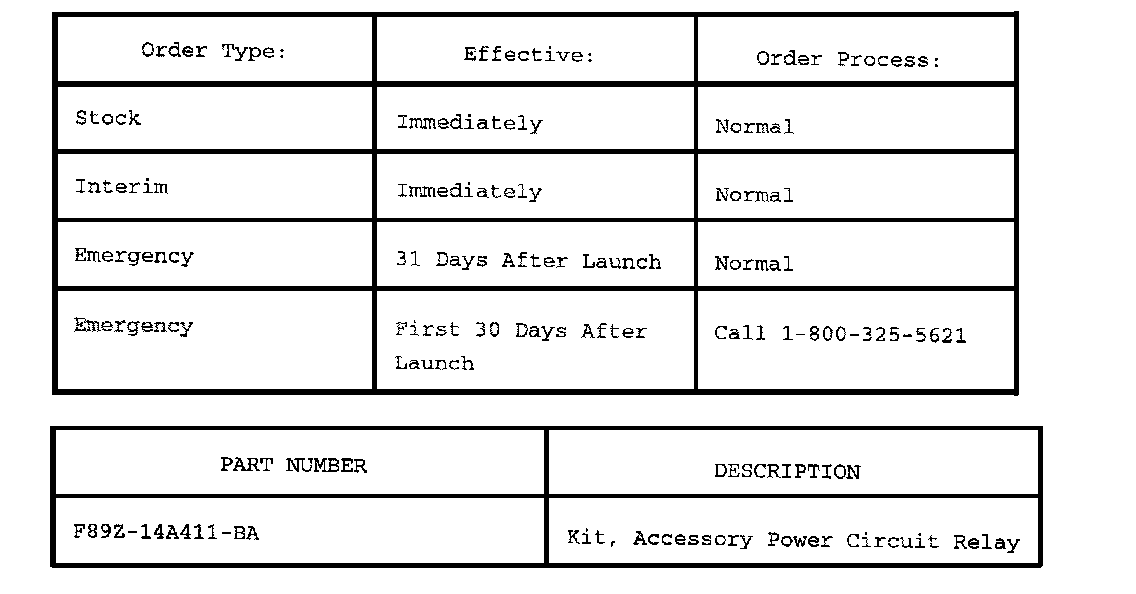 Parts will not be direct shipped for this recall. Order parts requirements through normal order processing channels.