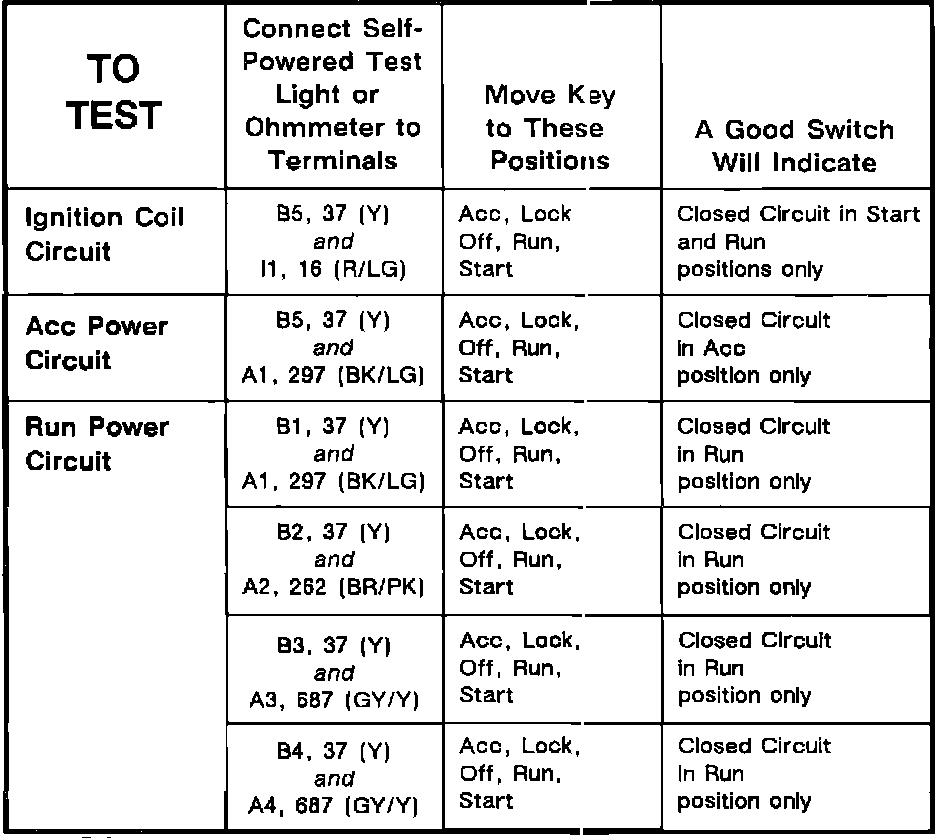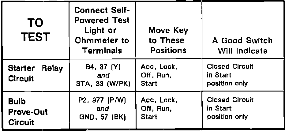 Ignition Switch: Testing and Inspection