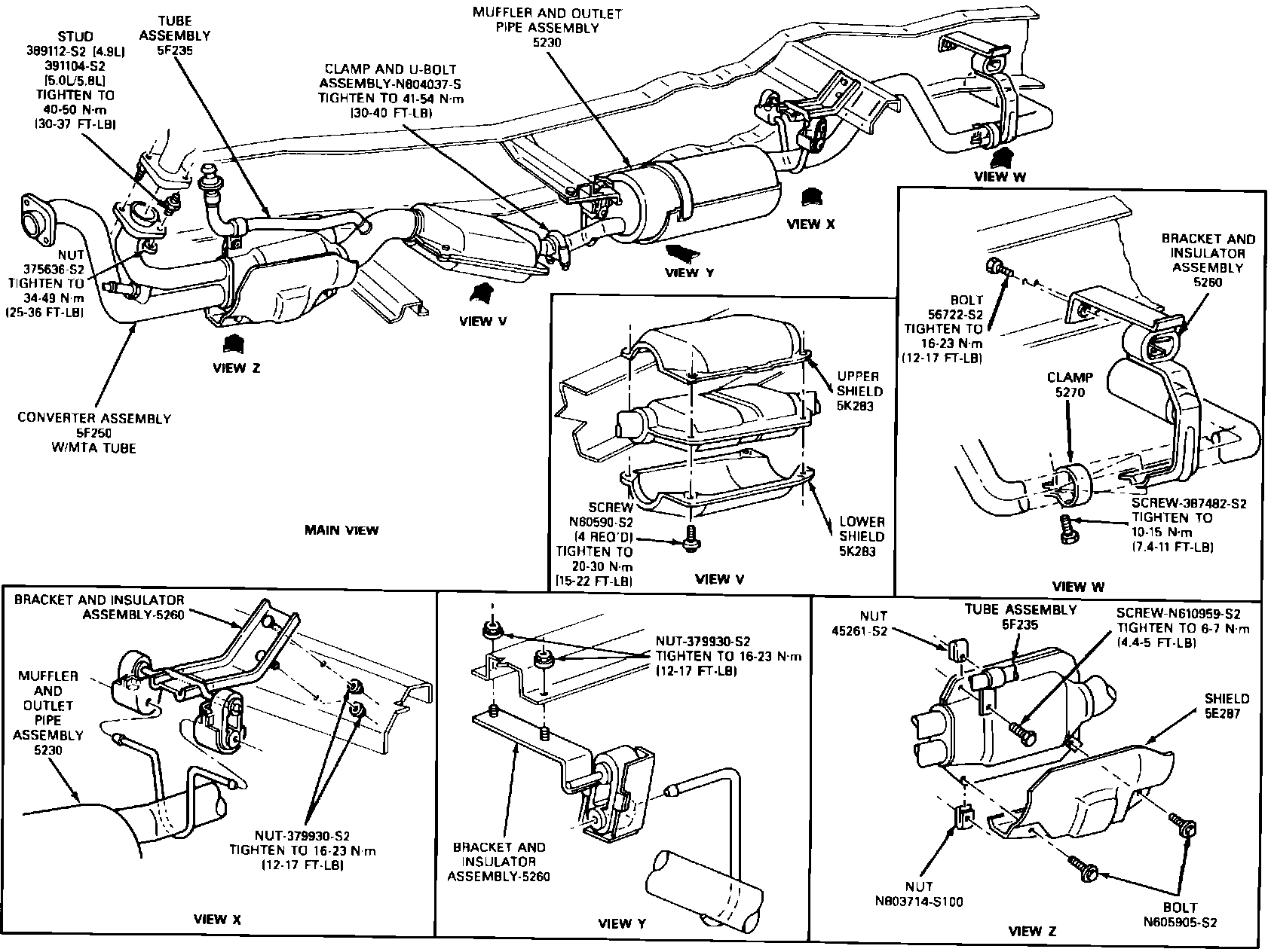 5. Install the converter/Y-pipe assembly to the exhaust manifold and loosely tighten the fasteners.