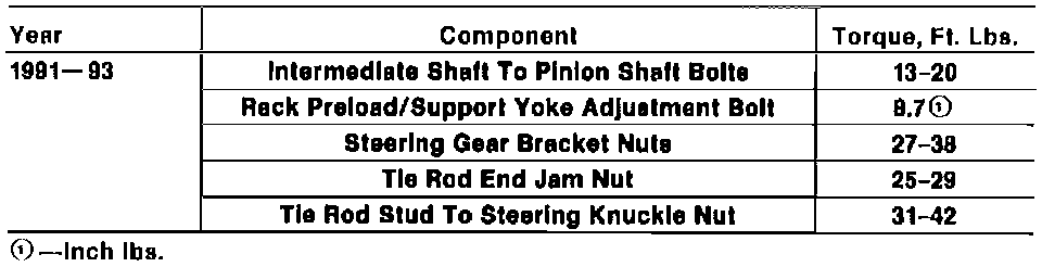 Tightening Specifications:
