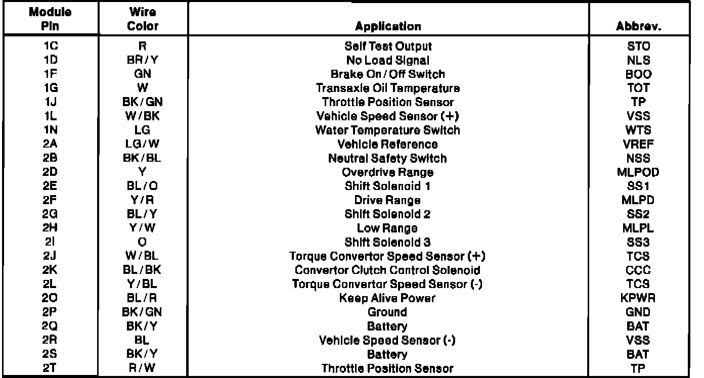 Control Module Pinout:
