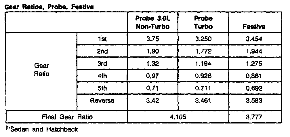 MTX (B) 5-spd M/T, Gear Ratios (Probe):