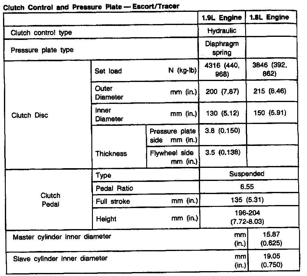 MTX (B) 5-spd M/T, Clutch Control/Pressure Plate (Escort/Tracer):
