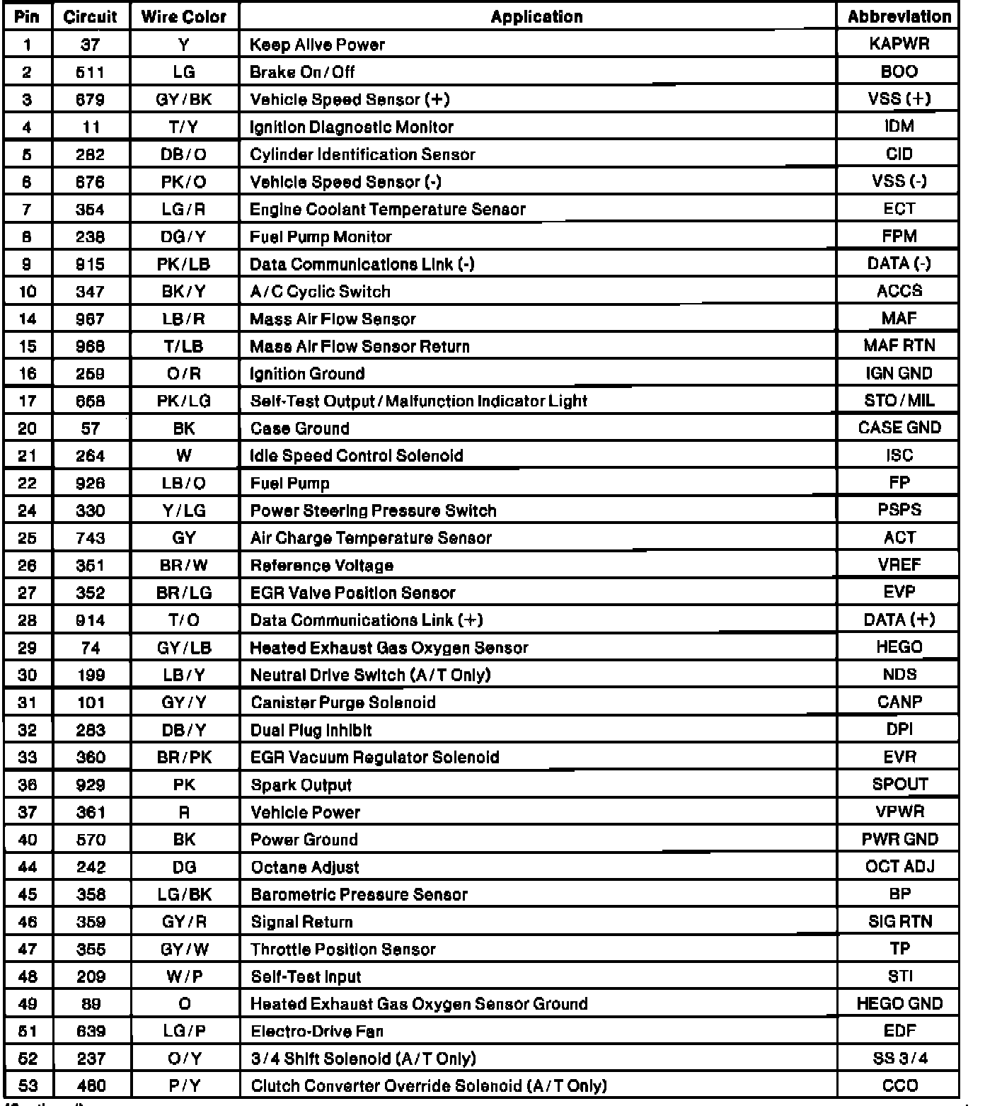 Electronic Engine Controller Connector Pinout: