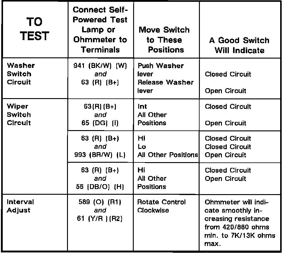 Component Testing Procedure - Wiper Washer Circuits: