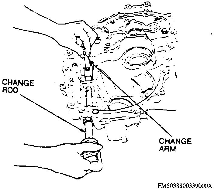 24. Remove change arm roll pin using pin punch, then the baffle plate, change arm, and change rod.