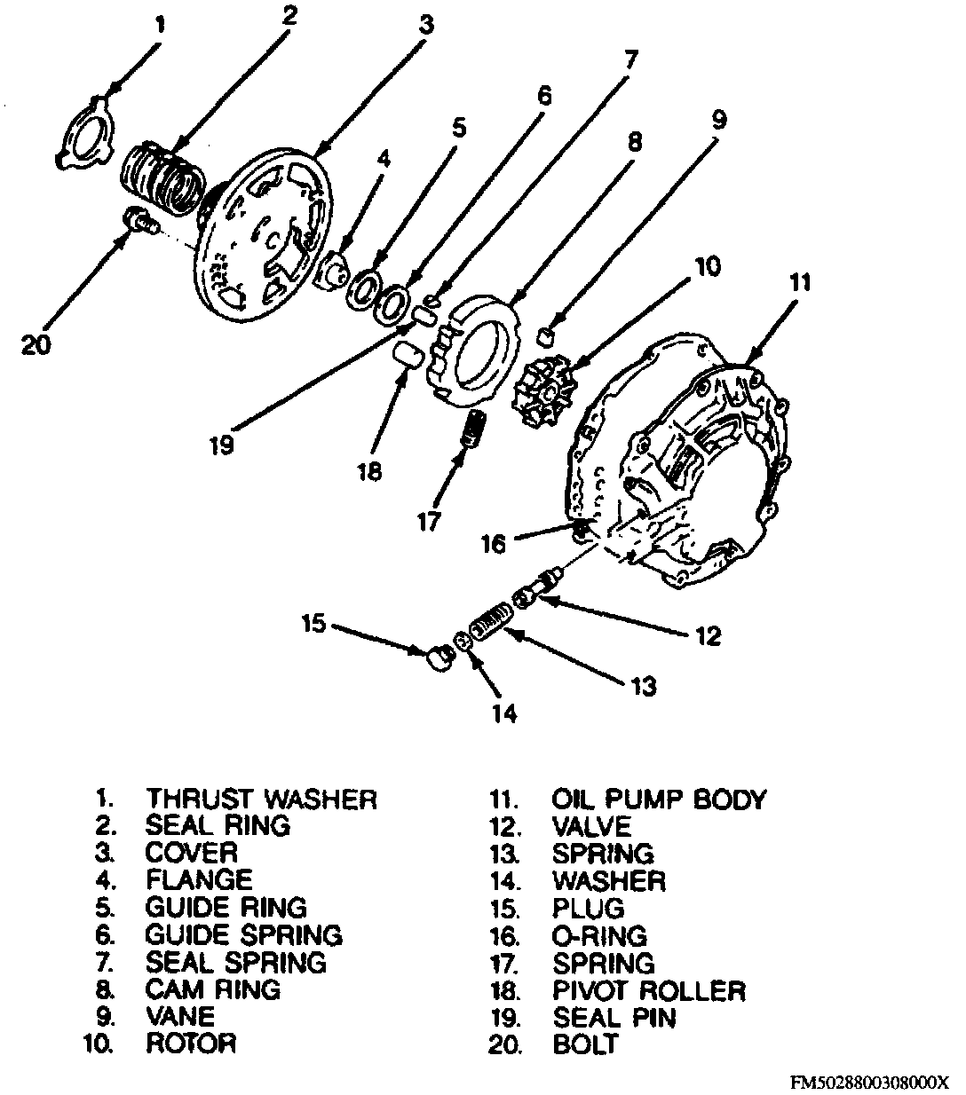 2. Install cam ring, pivot roller, and rotor onto oil pump body.