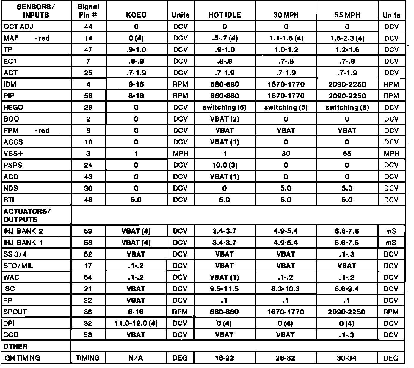 Normal Scan Data Values (Includes PIDs)