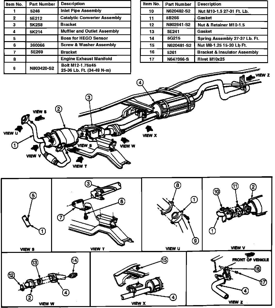 5. Install the converter to the outlet pipe using a new non-asbestos gasket. Install the fasteners and torque to 27-31 ft lb (36-42 Nm).
