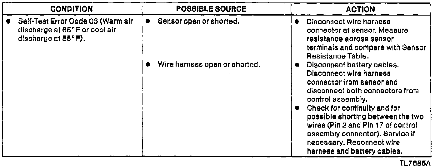 In-Car Temperature Sensor Diagnosis Resistance Table: