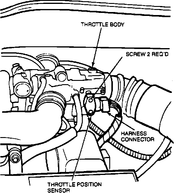 CAUTION: Slide rotary tangs into position over the throttle shaft blade, then rotate the TP sensor CLOCKWISE to installed position. Failure to install the TP sensor in this manner may result in excessive idle speeds.