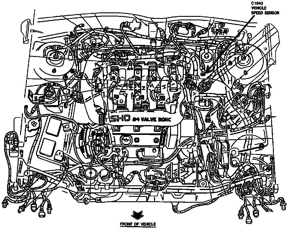 , (C1043), is located at the lower LH rear of engine, on the transaxle.