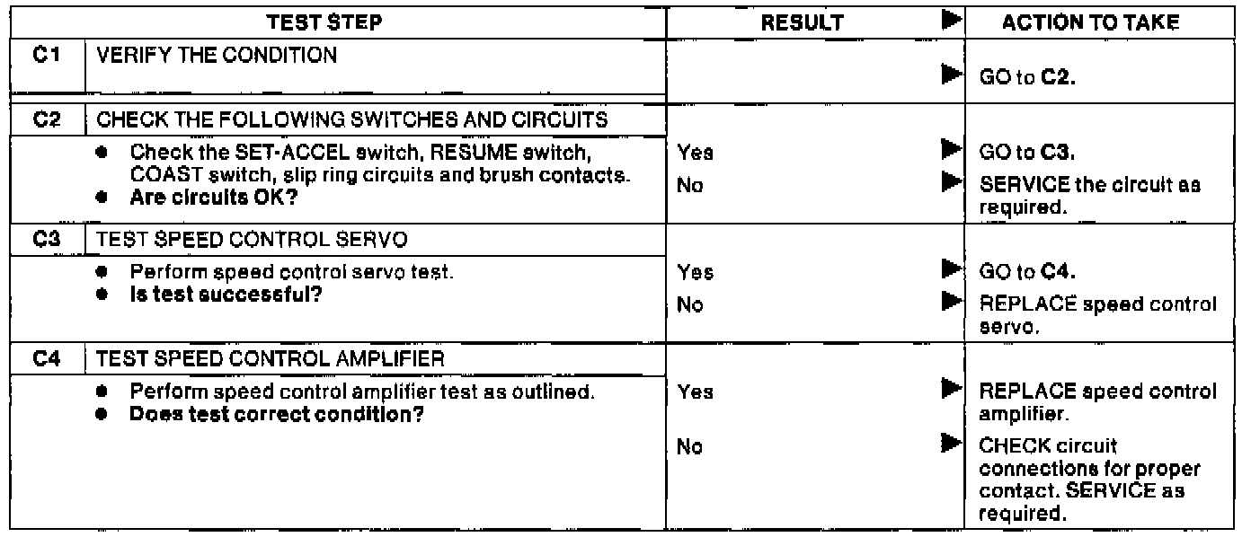 Fig. 12 Pinpoint Test C, Speed Control Operates But Does Not Accelerate Or Coast Down Properly. Mustang, Tempo/Topaz: