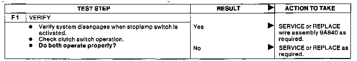 Fig. 15 Pinpoint Test F, Speed Control Does Not Disengage When Clutch Pedal Is Depressed. Mustang, Tempo/Topaz W/Manual Transaxle: