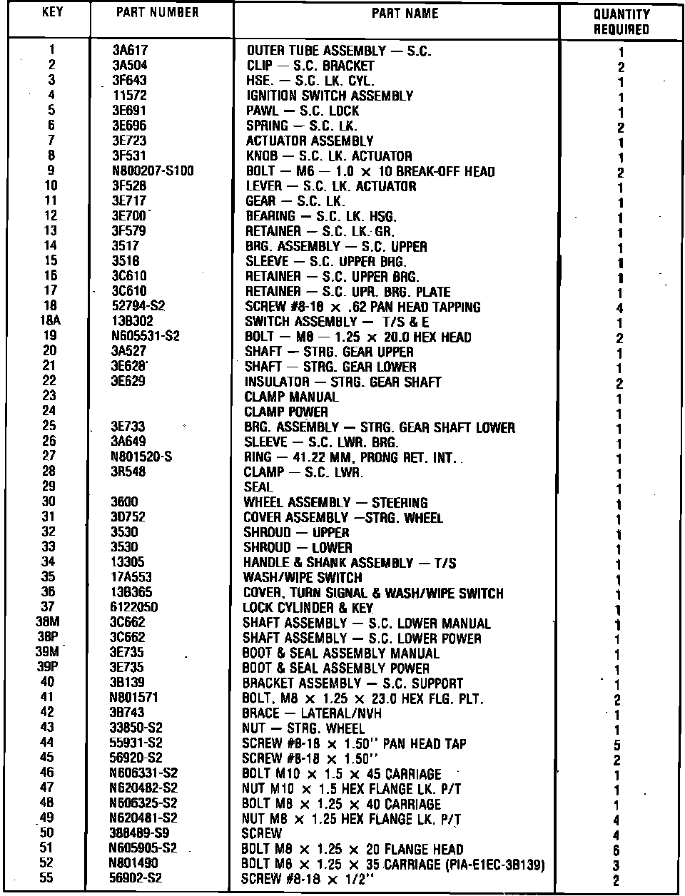 Fig. 9 Exploded View Of Fixed Steering Column (Part 1 Of 2). Tempo, Topaz & 1989-90 Escort: