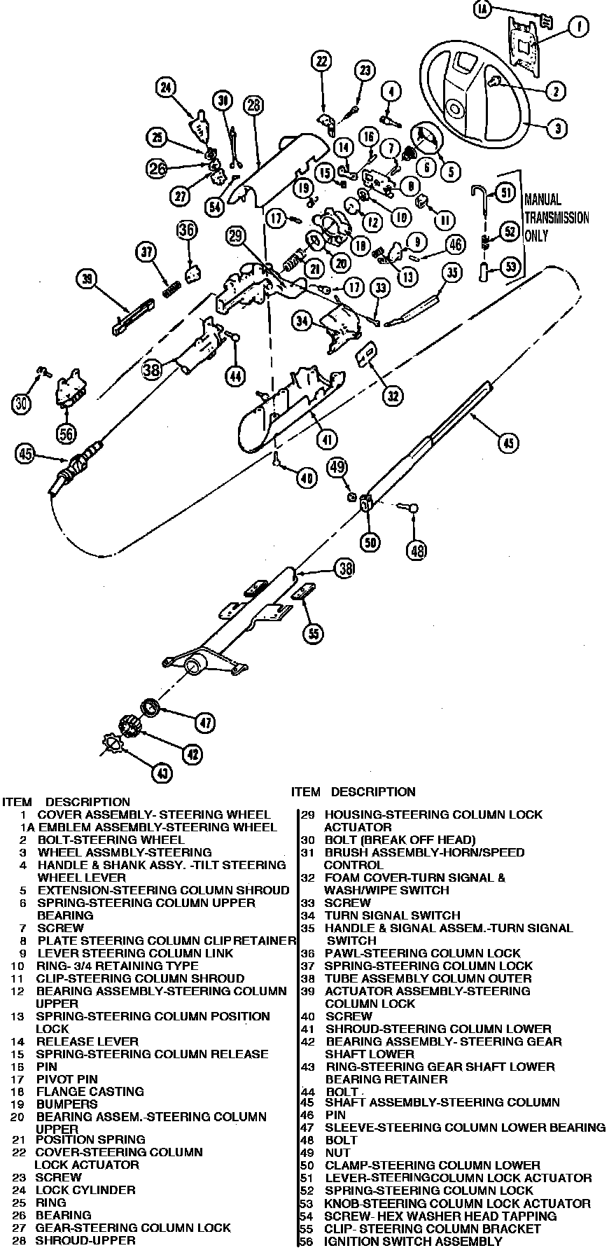 Fig. 10 Exploded View Of Tilt Steering Column. 1989 Tempo & Topaz: