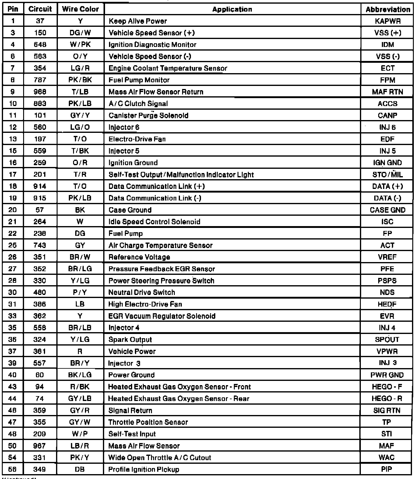 Electronic Engine Controller Connector Pinout: