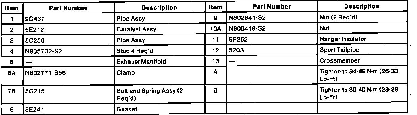 11. Align the exhaust system and tighten all fasteners, starting at the front of the vehicle. See image for torque specifications.