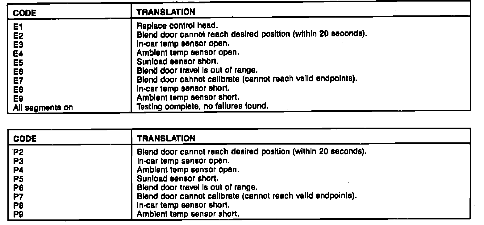 P codes indicate intermittent errors. That is, since the last battery hookup, a failure had occurred but has corrected itself. To clear P codes. depress the COOL button for three seconds. Check circuit to make sure the condition has been resolved.