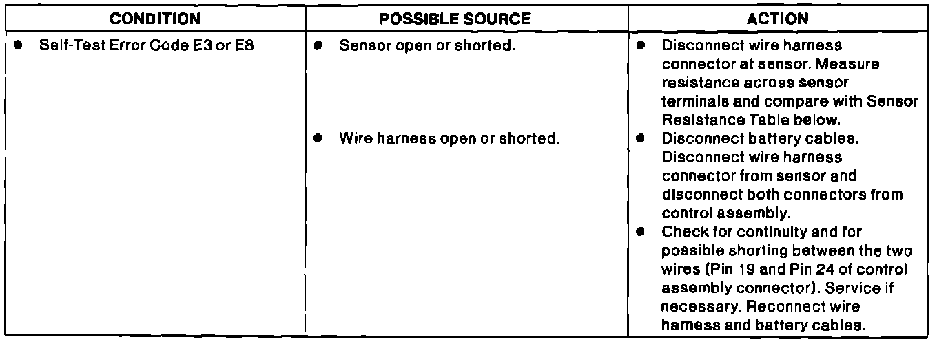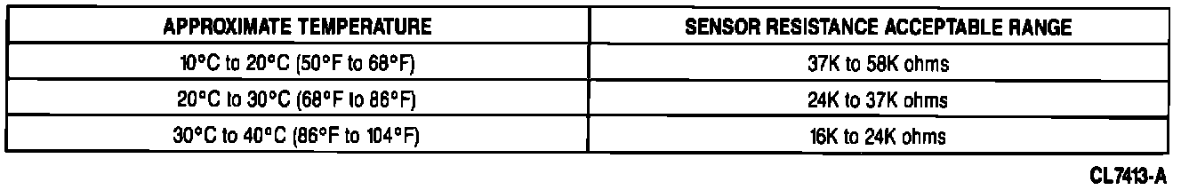 Sensor Resistance Table:
