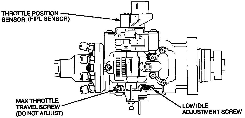 To test or adjust the Fuel Injection Pump Lever (FIPL) sensor (E4OD transmissions only) the engine must not be running (OFF).