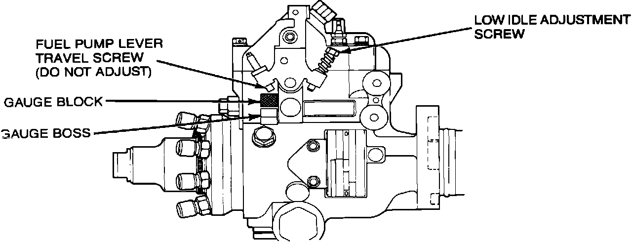 ^ While in self test, place a 0.515 inch gauge block (Rotunda T83T-7B200AH between the fuel pump lever travel screw and gauge boss.