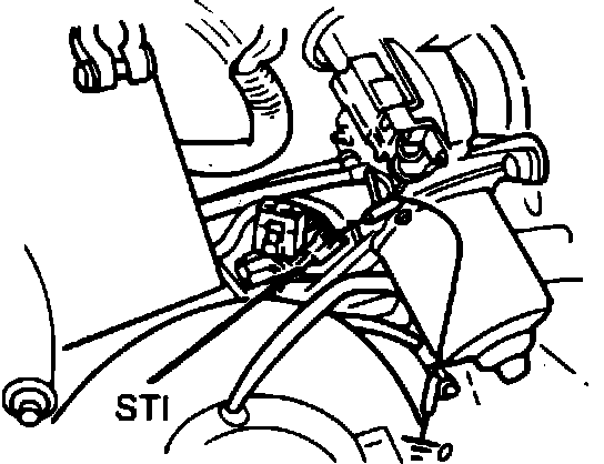5. Ground single pin black, Self-Test Input (STI) test connector (Y/BL wire) located near brake master cylinder.