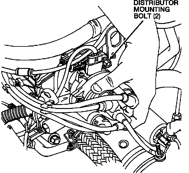 8. If white marks are not aligned, loosen mounting bolts and turn distributor until marks align.
