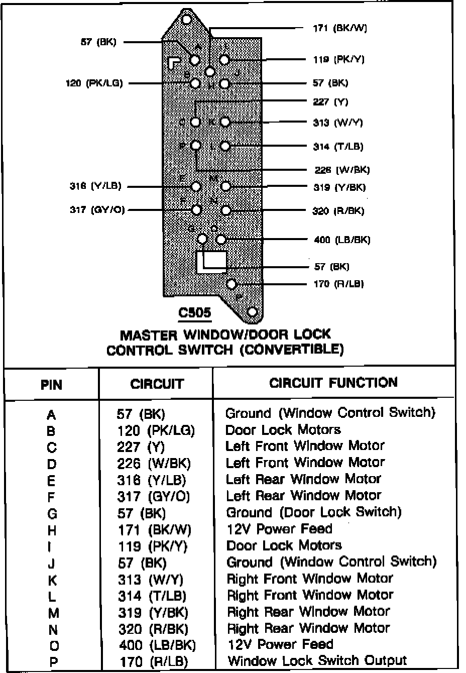 Master Window/Door Lock Control Switch (Convertible):