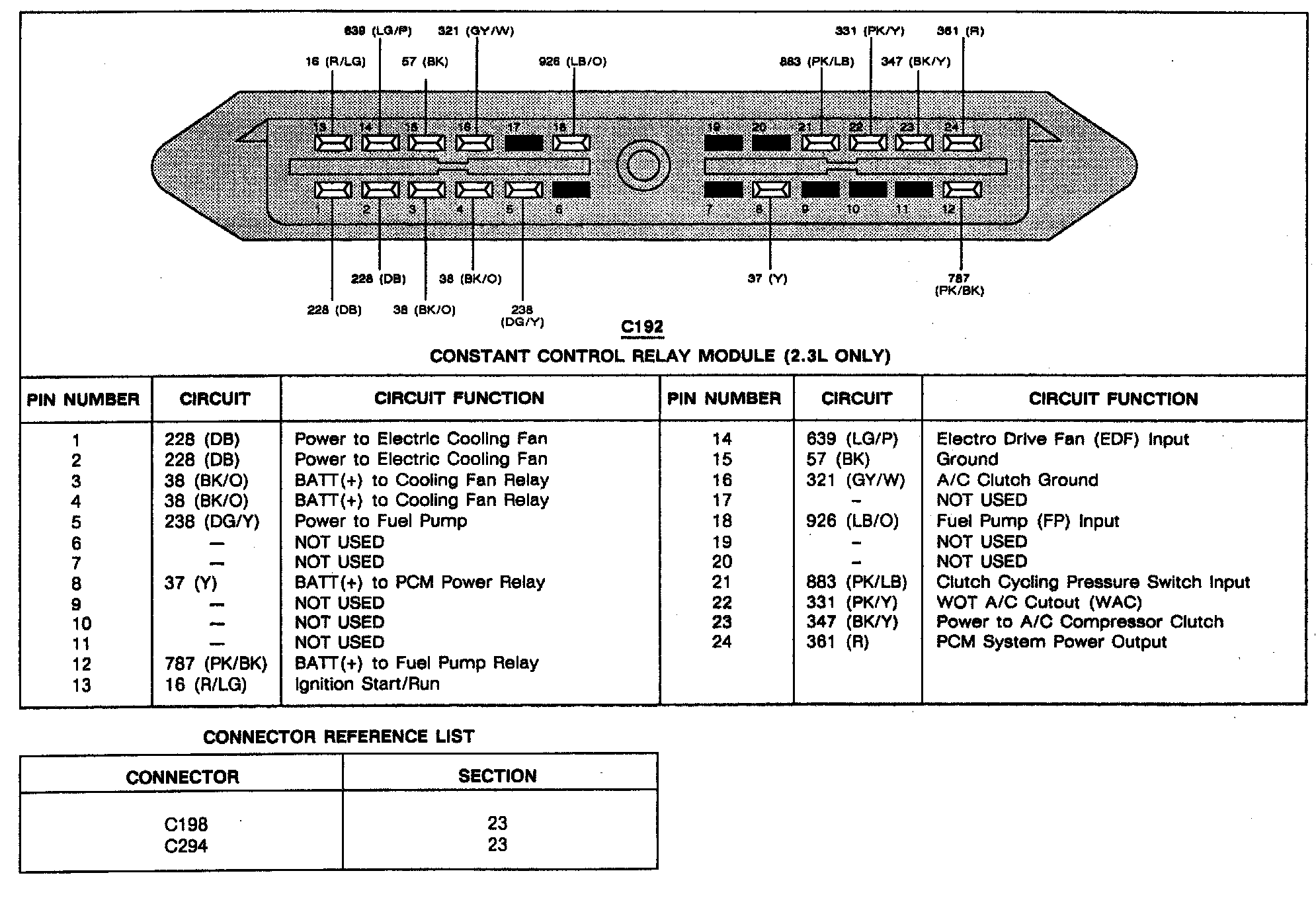Constant Control Relay Module Pin Reference Chart (2.3L Only):