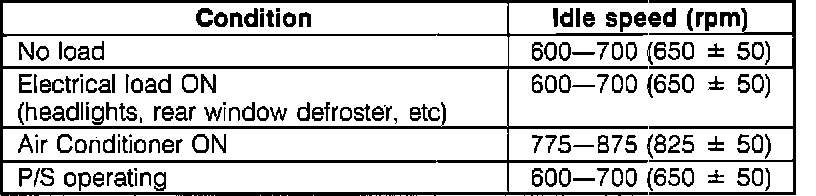 Idle Speed Table: