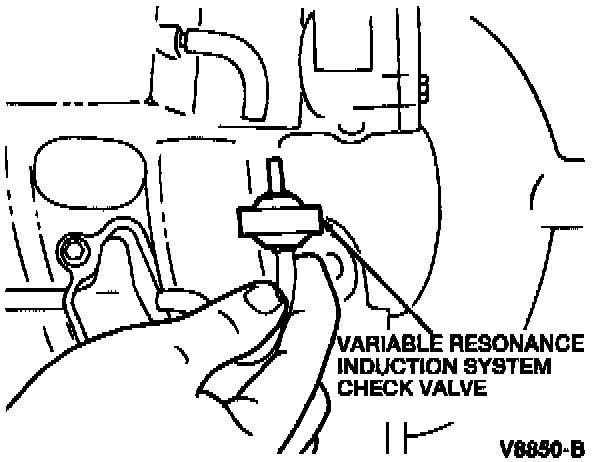 2. Disconnect the vacuum hoses from the VRIS check valve.