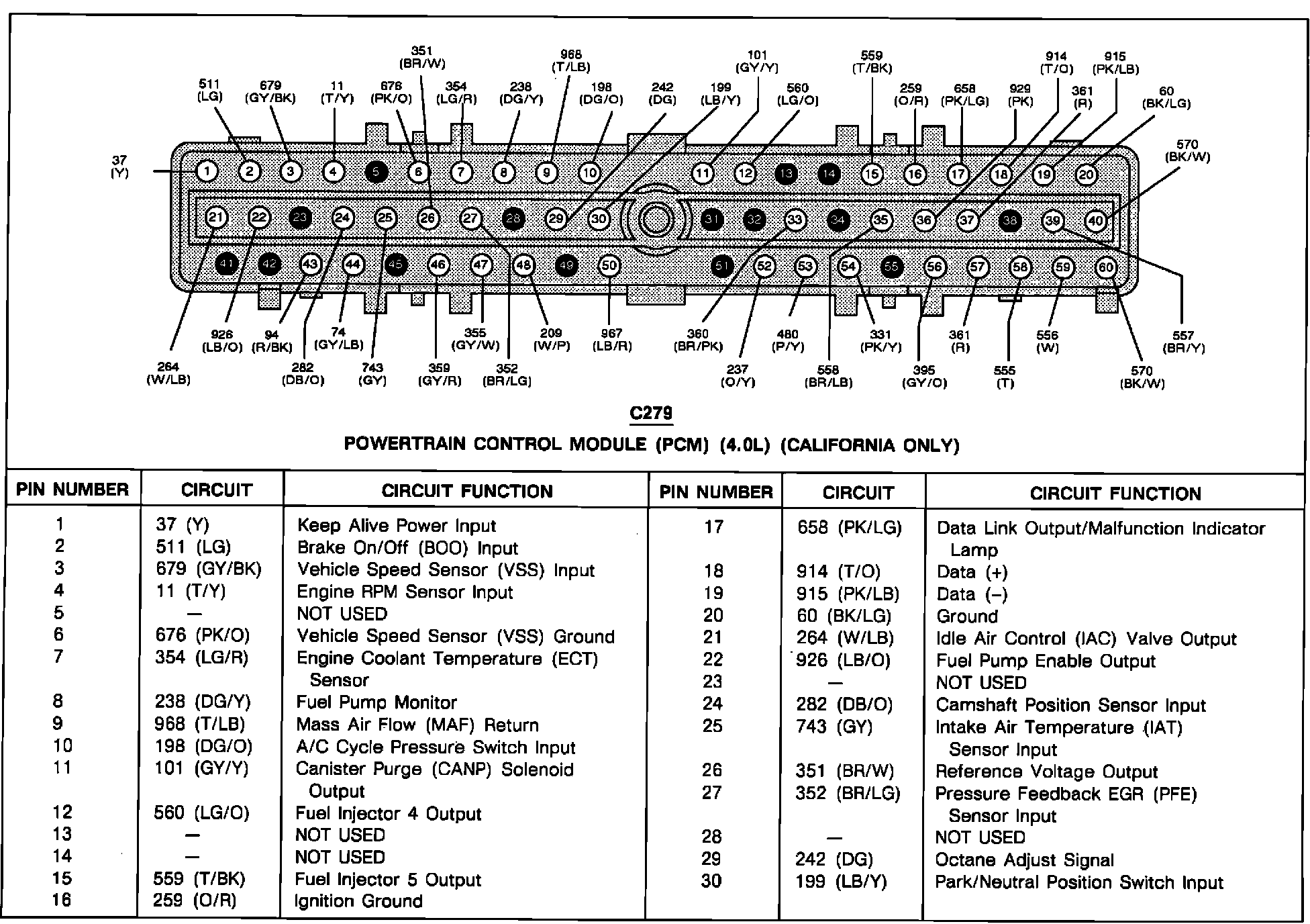 Powertrain Control Module (PCM) Circuit Function 4.0L: