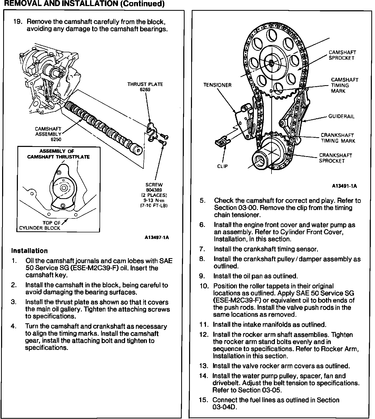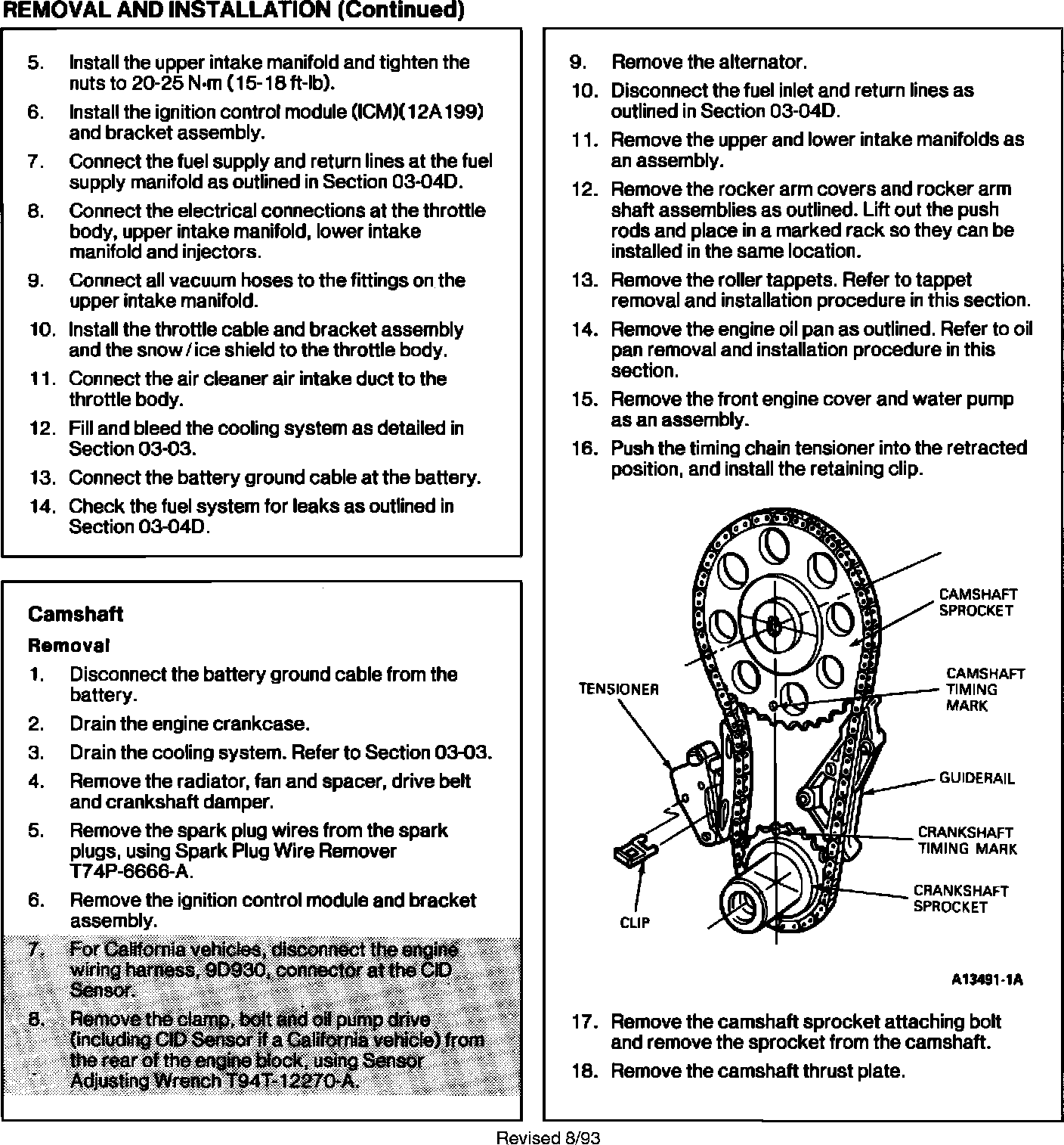 SERVICE MANUAL - 1993 - SECTION 03-01D - CAMSHAFT REMOVAL/INSTALLATION PROCEDURES REVISED
