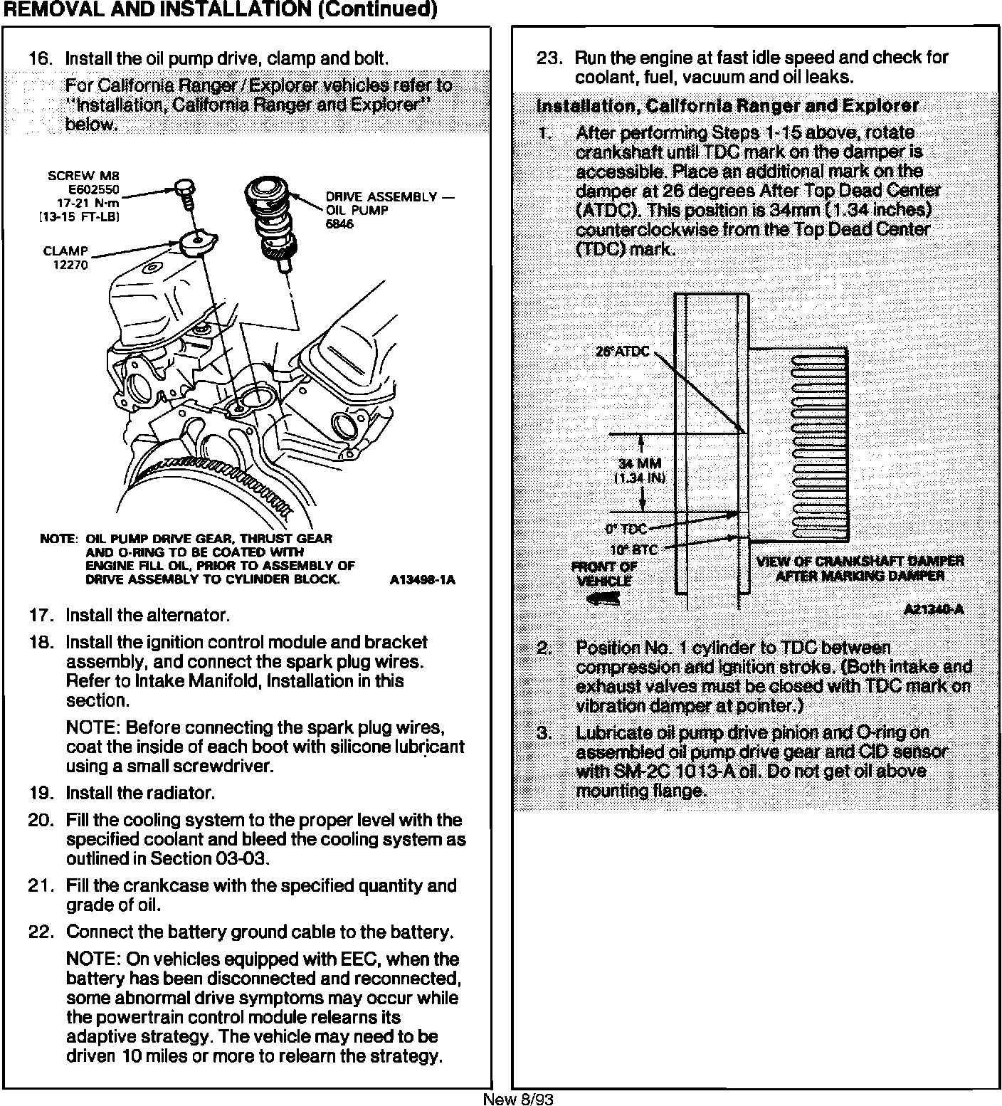 THE FOLLOWING REVISED/NEW INFORMATION IS APPLICABLE TO 1993 4.0L RANGER/EXPLORER, CALIFORNIA ONLY.